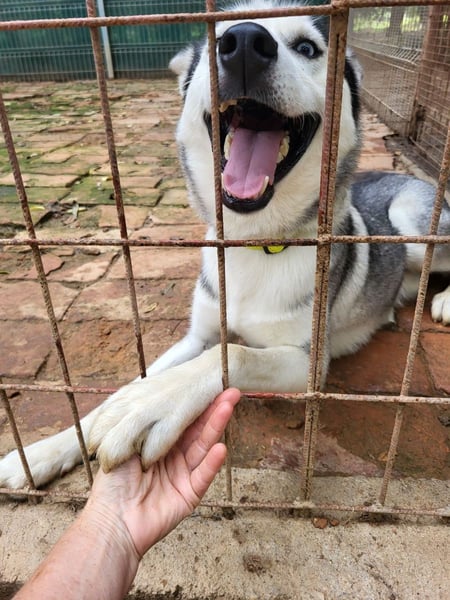 Ohne Leine war Fred schon immer der freundlichste Hund, er lässt sich durch sein Zwingergitter streicheln, streckt immer wieder die Pfote durch als würde er um Hilfe rufen. Der hübsche Kerl ist auch ein Quatschkopf und hat viel Blödsinn im Kopf. Und heut ist auch das Laufen an der Leine kein Thema mehr für ihn, wie man gut auf seinen Videos sehen kann.