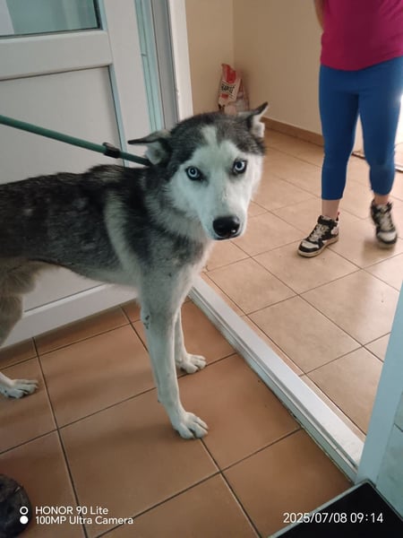 Der Rüde mit den auffallend hellen Augen war total abgemagert- er war entweder absolut unterversorgt oder schon länger draußen unterwegs. Mittlerweile ist aus ihm ein wunderschöner Hund geworden.