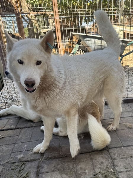 Der wunderschöne Husky oder Husky-Mix namens Najo ist ein wahrer Sonnenschein und steckt jeden sofort mit seiner guten Laune an. Freundlich begrüßte er uns in seinem winzigen Zwinger, den er sich seit seiner Ankunft im Februar 2024 im Tierheim Bucov/Rumänien verträglich mit einer Hündin und einem weiteren Rüden teilt. Najo suchte aktiv unsere Nähe und wollte uns um jeden Preis gefallen – man merkt deutlich, dass er im tristen Tierheimalltag sehr unglücklich ist und dennoch hat er seine fröhliche Art uns Menschen gegenüber behalten. Wir wünschen dem bezaubernden Rüden, dass er nun endlich von seinen Menschen gesehen wird und er nun das große Glück zu einem eigenen Zuhause bekommt.