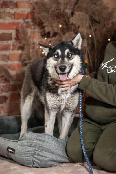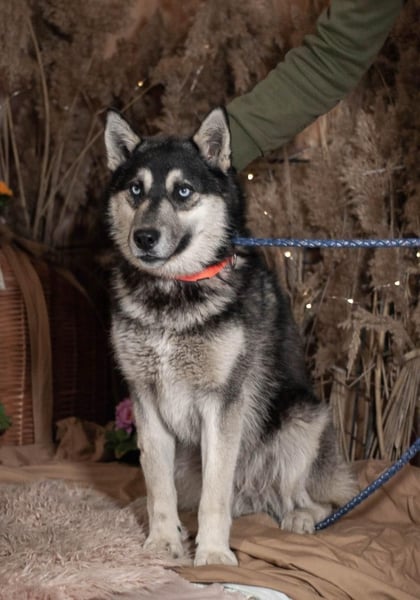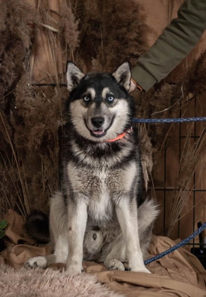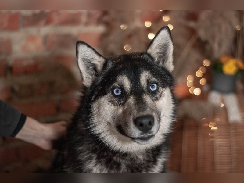 Sky ist ein aktiver und gleichzeitig sanfter junger Rüde. Wie für Huskys typisch ist er sehr kommunikativ mit den Menschen.