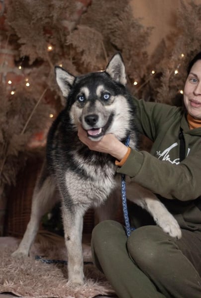 Die Huskys(mixe) Sky und Goldy wurde von Soldaten genau an der Front gefunden und in die Auffangstation gebracht.