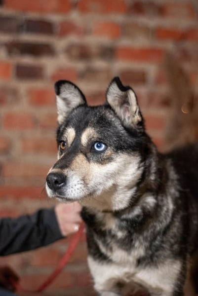 Die Huskys(mixe) Sky und Goldy wurde von Soldaten genau an der Front gefunden und in die Auffangstation gebracht.