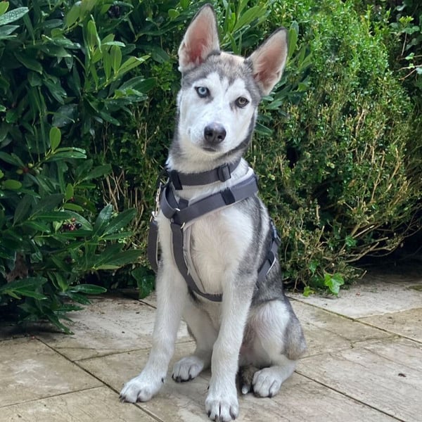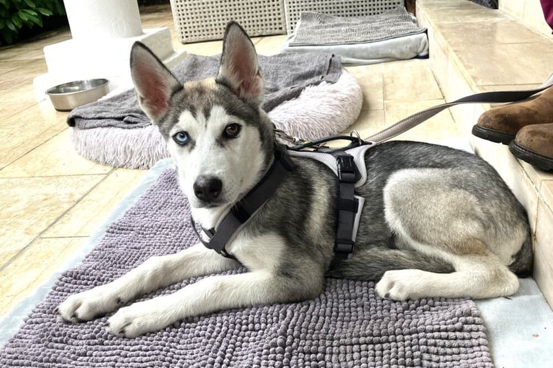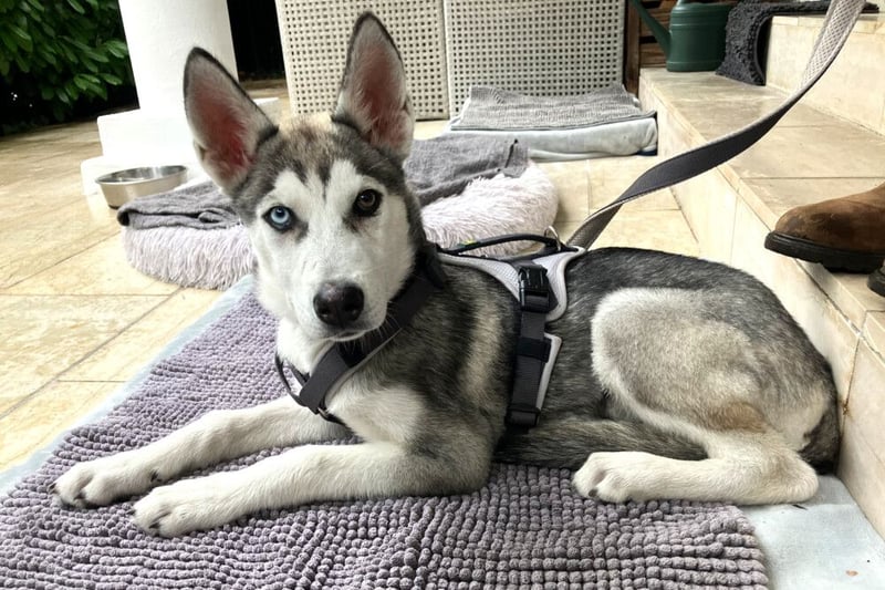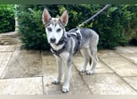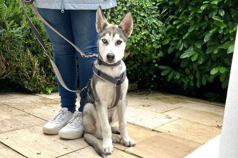 Der putzige junge Husky ist welpengemäß sehr neugierig, verspielt, aber bei fremden Menschen verlässt ihn oft der Mut. Hier ist etwas Geduld gefragt, um sein Herz zu erobern. Aber wie so oft sind Leckerlis der Schlüssel zum Glück.