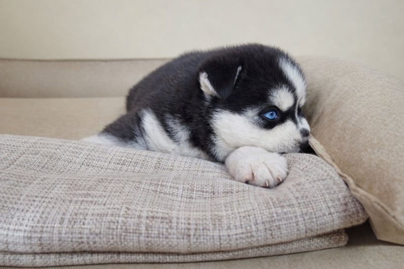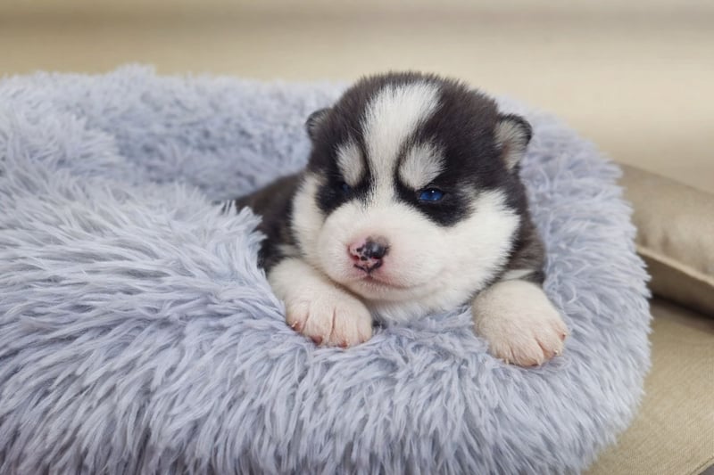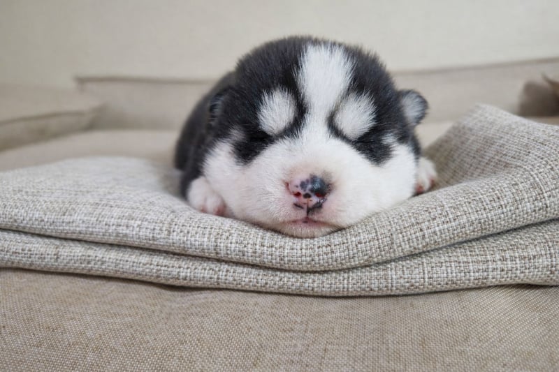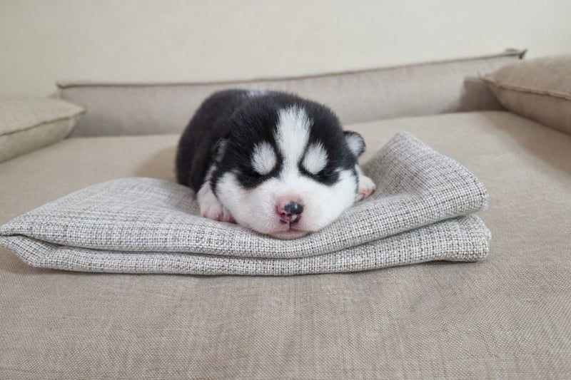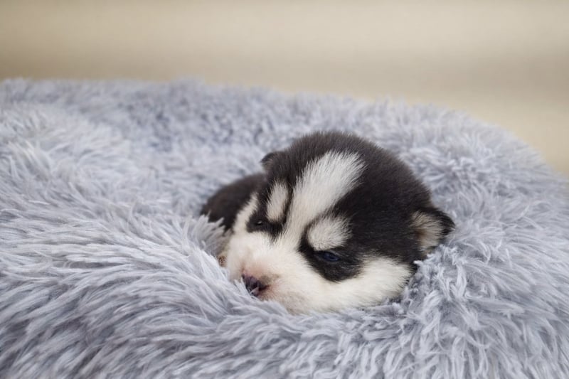 FCI Pedigree Blue Eyed Black & White Siberian Husky Champion Puppy