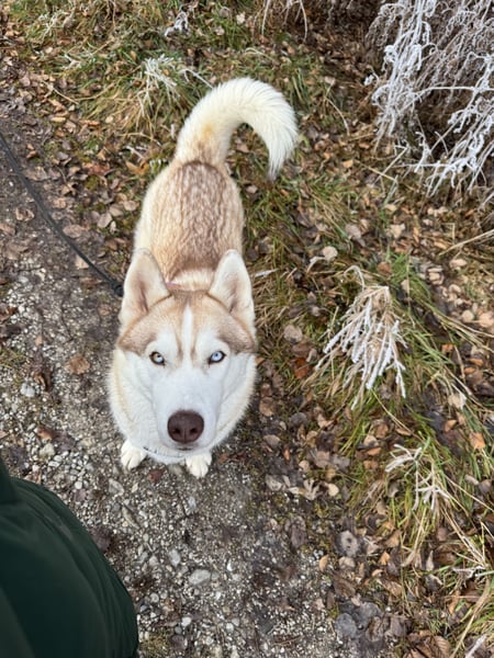 Sie ist sehr verkuschelt und schläft nachts im Haus. Sie bellt und Jault nicht und ist daher ein ruhiger Hund. Allgemein ist sie für einen Husky eine coole Socke und relativ ruhig.