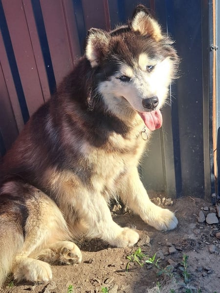 Kiara wurde mit ihren beiden Welpen, Koda und Kai, aus schlechter Haltung gerettet, wobei beide Welpen schon ihre Familien gefunden haben.