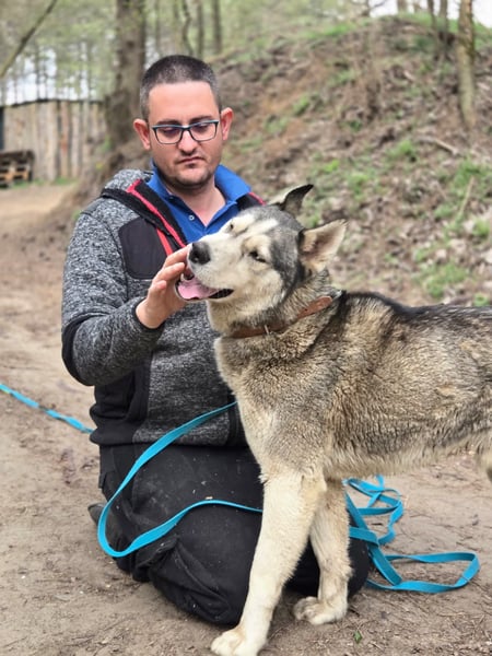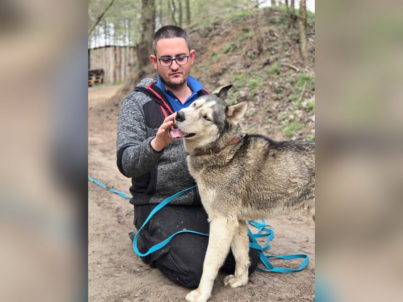 Ich mache unglaubliche Fortschritte und entwickle mich richtig gut. Ich bin ein sehr intelligenter Hund mit echtem Husky-Temperament. Aktuell übe ich den Umgang mit anderen Hunden und ich bin auf einem guten Weg. Auch Menschen gegenüber werde ich immer offener und freundlicher.