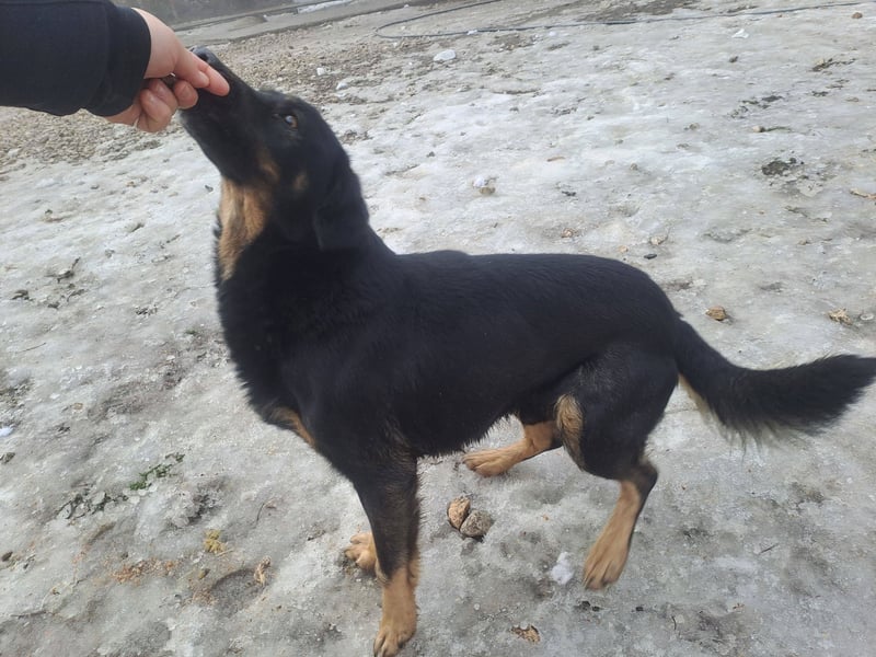 Mit anderen Hunden hatte er bisher noch keinen direkten Kontakt außerhalb des Zwingers, dort reagiert er jedoch gut. Die Verträglichkeit wird behutsam getestet, sobald er die Gelegenheit dazu bekommt.