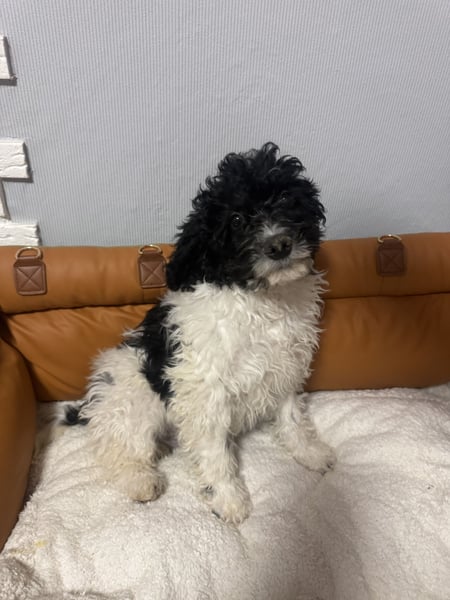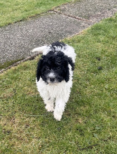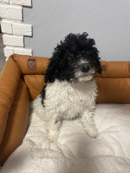 Wir schätzen es ist eine Mischung aus Wasserhund und Malteser