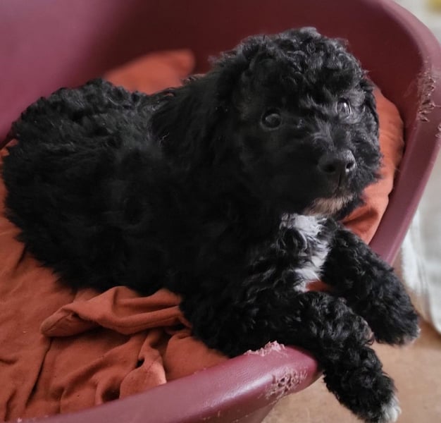 Mein Papa ist ein reinrassiger Perro de Agua und meine Mama eine Mischlingshündin die man nicht wirklich irgendeiner Rasse zuordnen kann.