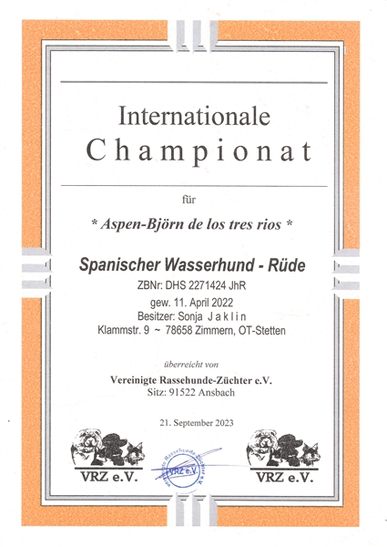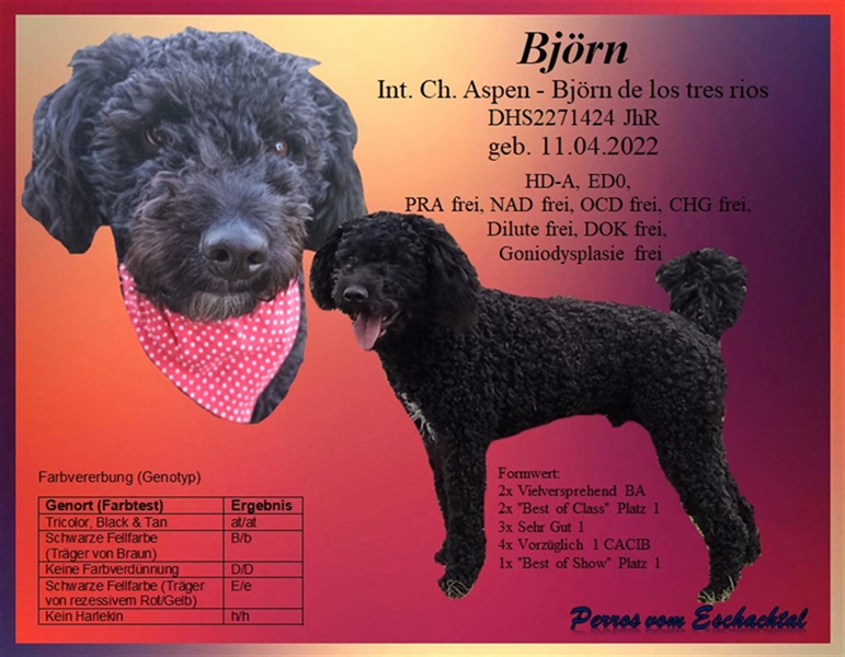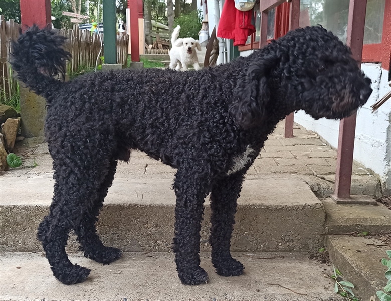 Unser Perro ist top fit, mit einem großartigen Körperbau. Rassetypisch ist er Fremden gegenüber zurückhaltend, begegnet aber allem neuen mit Neugierde und Interesse. Er ist sehr aufmerksam und besitzt eine schnelle Auffassungsgabe. Andere Hunde und auch Rüden sind kein Problem, ebenso andere Tiere wie Enten, Hühner, fremde Katzen und Ponys. Er lebt zusammen mit meinem Kind, zwei weiteren spanischen Wasserhundrüden und 3 Katzen in unserem Haushalt.