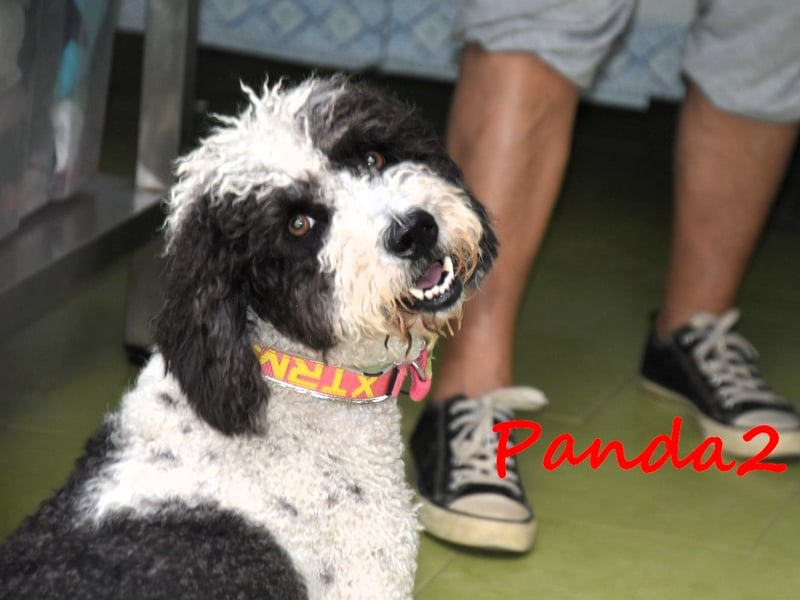 Panda2 lebte allein auf einem Stück Land. Eine Mitarbeiterin vom Tierheim fuhr jeden Tag dort vorbei und hat gesehen, wie traurig und einsam die Hündin dort lebte. Wasserhunde sind sehr soziale Familienhunde und Panda2 vereinsamte dort immer mehr. Irgendwann konnten wir den Besitzer ausfindig machen und zum Glück war dieser anscheinend froh sie loszuwerden. Sie lebt jetzt bei der Mitarbeiterin auf Pflegestelle und wird liebevoll aufgepäppelt. Panda2 ist eine sehr soziale, liebevolle und menschenbezogene Hündin und wird jeden Tag hübscher. Sie lebt dort auch mit anderen Hunden und Katzen zusammen. Was ihr jetzt noch fehlt ist eine liebevolle Familie, die mit ihr gemeinsam die schönen Seiten des Lebens genießen möchte.