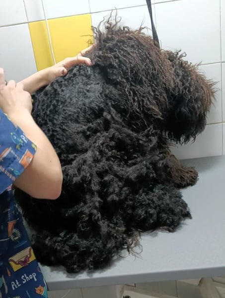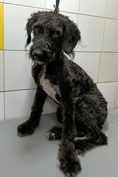 Da unser Pflegezustand gelinde ausgedrückt schrecklich war, wurden wir alle erst einmal Groomern vorgestellt, geschoren und gebadet. Nun fühlen wir uns schon viel besser, da wir von dieser stinkenden und verfilzten Last befreit wurden.