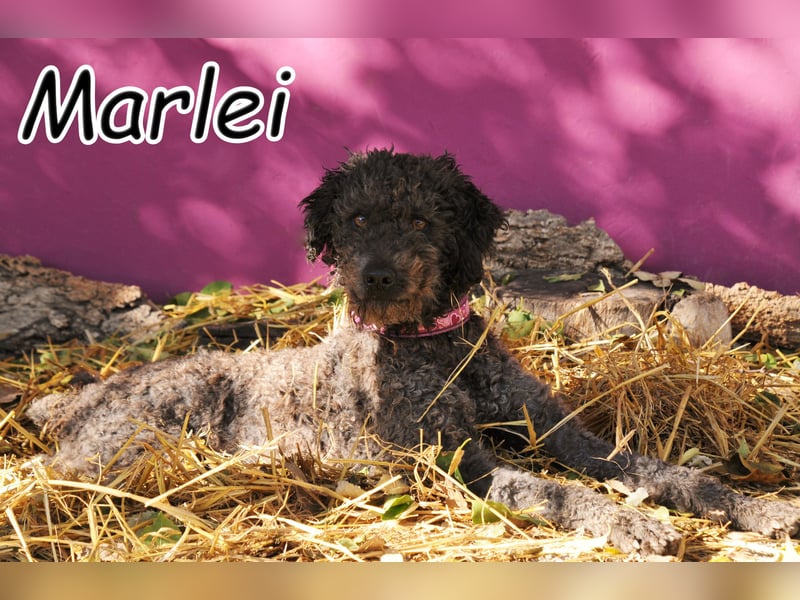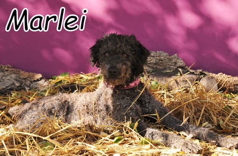 Marlei ist ein spanischer Wasserhund, ein Rüde mit dunklen, sanften Augen, in denen sich sowohl Tiefe als auch leise Hoffnung spiegeln. Sein Fell ist lockig wie sanfte Wellen, doch in seinem Inneren trägt er Spuren eines Sturms: Marlei wurde von seinem Menschen im spanischen Tierheim abgegeben. Er hat nicht verstanden, warum – er hat nichts falsch gemacht, hat niemanden verletzt, hat einfach nur geliebt. Und trotzdem fand er sich plötzlich wieder in einem Zwinger, an einem Ort voller fremder Gerüche, voller Stimmen, die nicht die seiner Familie waren.