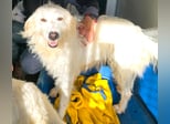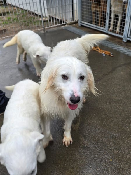 Neve ist eine wunderbare Spinone Italiano-Mischlingshündin, die mit ihren zwei Welpen aus einer schrecklichen Situation gerettet wurde. (Ihre Tochter Nuvola wird auch von uns vermittelt.)