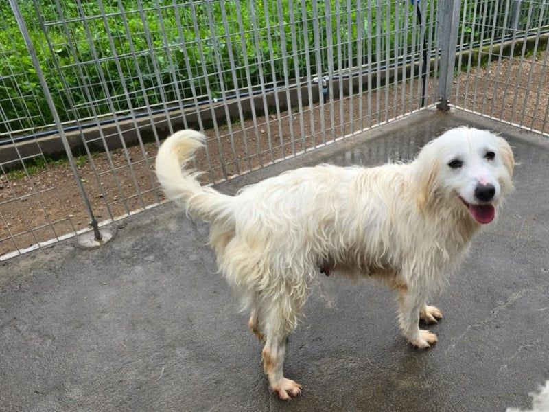 Neve ist eine wunderbare Spinone Italiano-Mischlingshündin, die mit ihren zwei Welpen aus einer schrecklichen Situation gerettet wurde. (Ihre Tochter Nuvola wird auch von uns vermittelt.)