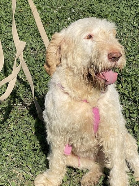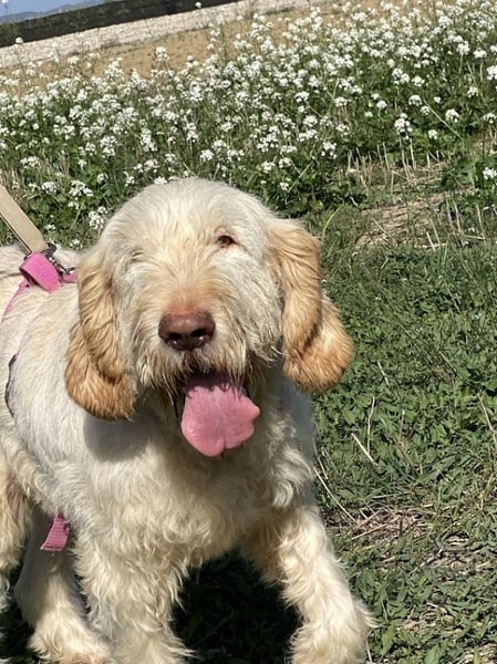 Und da ist sie, unsere Nelly: ein absolut aufgeschlossener Wuschel mit leuchtenden Augen, einer ständig wedelnden (verkürzten) Rute und mit so viel Potential, ein toller Familienhund zu werden! Im Verhalten gegenüber Katzen wurde sie noch nicht getestet, versteht sich aber erwiesenermaßen sehr gut mit anderen Hündinnen und Rüden und geht freundlich und sanft auf Kinder zu. Bei Kontakt zu Erwachsenen zeigt sie keine Scheu und geht sogar ordentlich an der Leine.