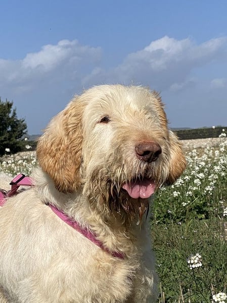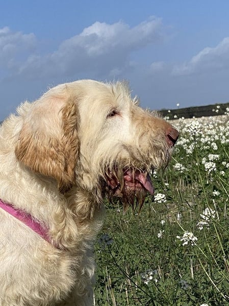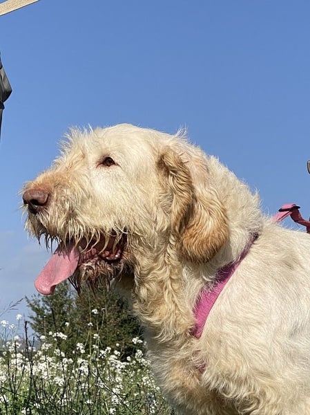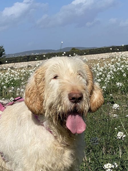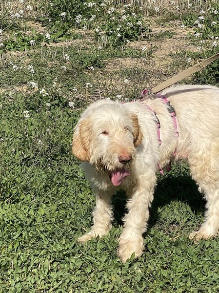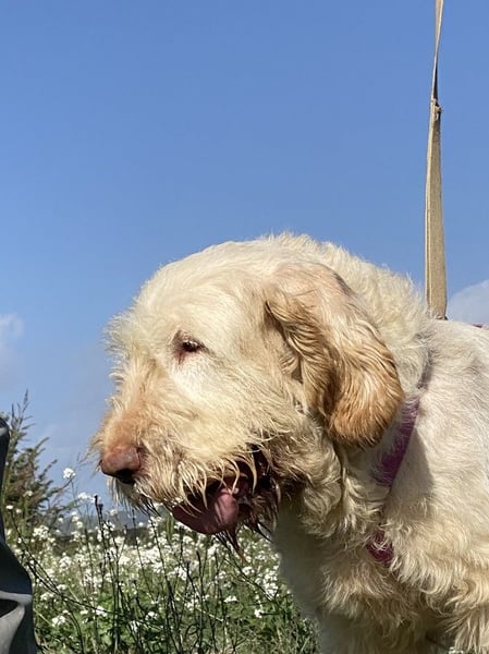 Und da ist sie, unsere Nelly: ein absolut aufgeschlossener Wuschel mit leuchtenden Augen, einer ständig wedelnden (verkürzten) Rute und mit so viel Potential, ein toller Familienhund zu werden! Im Verhalten gegenüber Katzen wurde sie noch nicht getestet, versteht sich aber erwiesenermaßen sehr gut mit anderen Hündinnen und Rüden und geht freundlich und sanft auf Kinder zu. Bei Kontakt zu Erwachsenen zeigt sie keine Scheu und geht sogar ordentlich an der Leine.