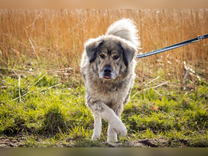 Maja ist für diese Rasse einfach zu händeln, sie hat wenig von den kaukasentypischen Vorbehalten gegen Fremde .