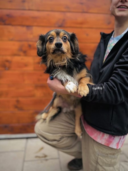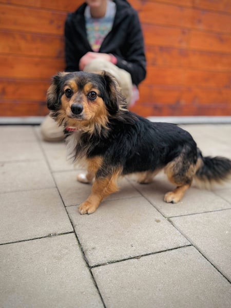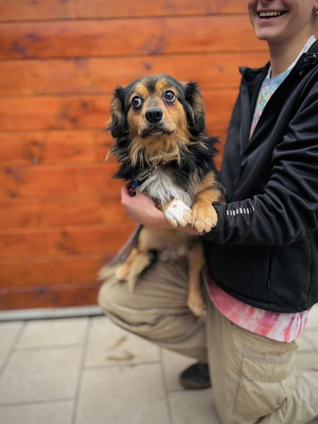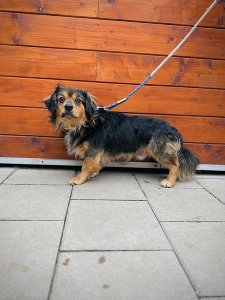 Igor ist ein etwa 3‑jähriger, rund 10 kg schwerer Rüde, der aus einem völlig verwahrlosten Haushalt mit vielen Hunden und enormem Chaos stammt. Er wurde dort geboren und hat sein ganzes Leben ohne jegliche Sozialisation verbracht. Die Hunde wurden nie berührt, kannten keinen Kontakt zu Menschen und mussten alles von Grund auf neu lernen.