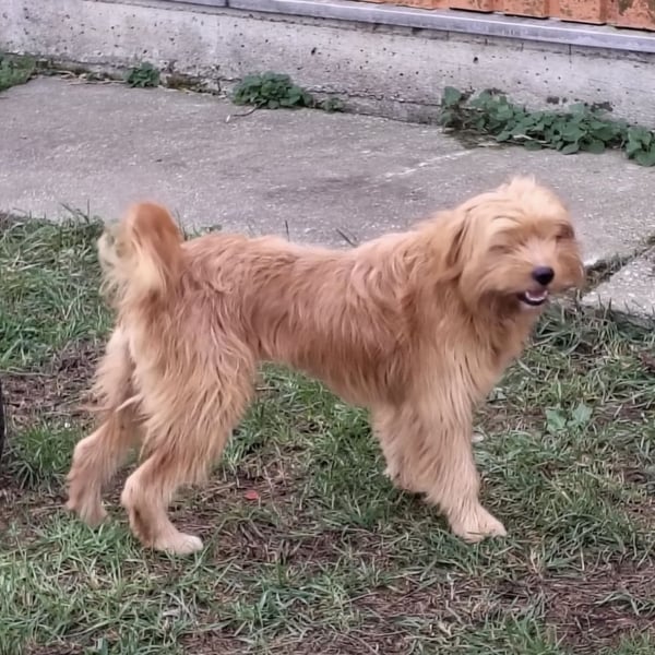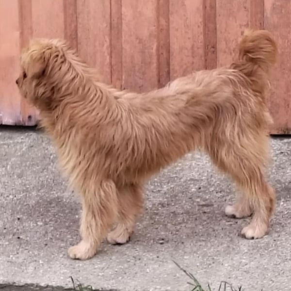Gitta ist ein Mädchen, sie ist laut Tierarztschätzung ca. 1 Jahr alt (geb. 17.09.2024), 45 cm groß und wiegt 12,2 kg. Vermutet wird ein Tibet Terrier Mischling. Sie hat etwas kurzer Rute, sie wurde womöglich so geboren, aber wir wissen es nicht mit Sicherheit.