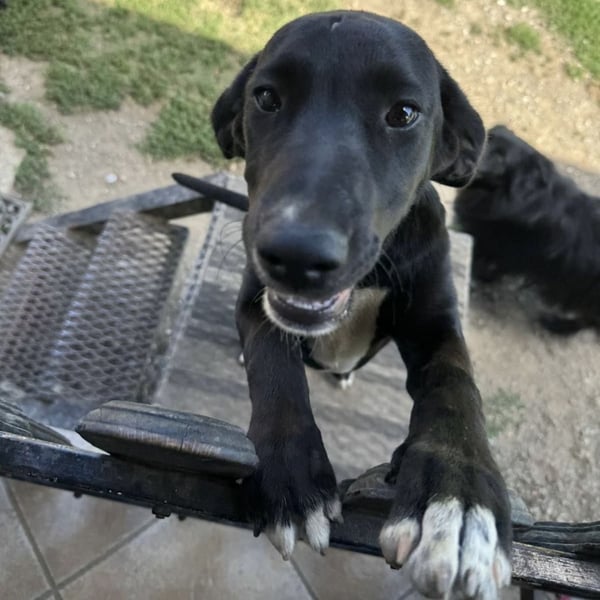 Mimi ist ein Mädchen, sie ist laut Tierarztschätzung ca. 7 Monate alt (geb. 18.06.2025), wiegt 20 kg und ist 54 cm groß. Sie ust noch nicht kastriert, vor der Ausreise wird sie es aber sein. Vermutet wird ein Labrador–Bracke-Mischling.