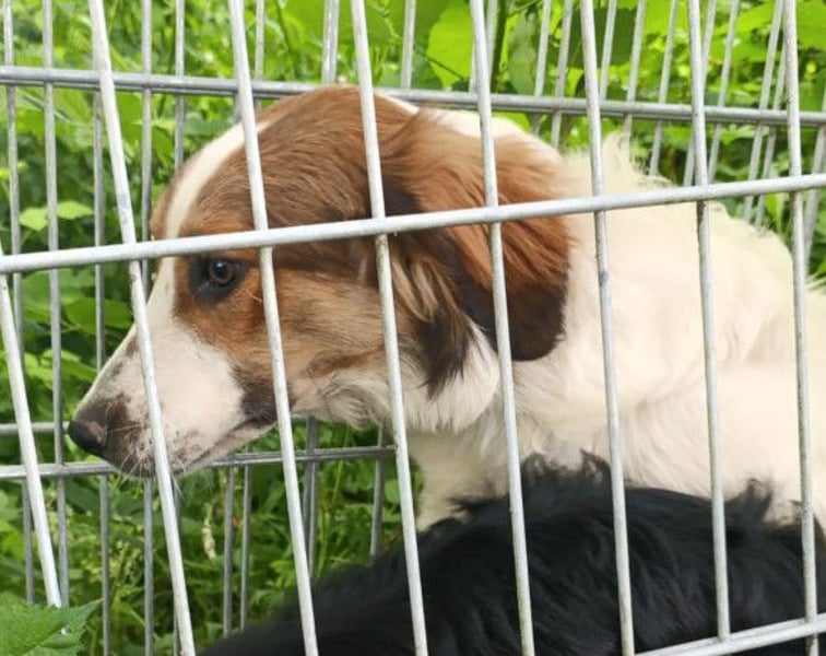 Besonderheiten: Amon ist noch sehr schüchtern und versteckt sich, wenn man sich ihm nähert – von seinen Geschwistern ist er der Aufgeschlossenste. Er wird nur an hundeerfahrene Menschen vermittelt.