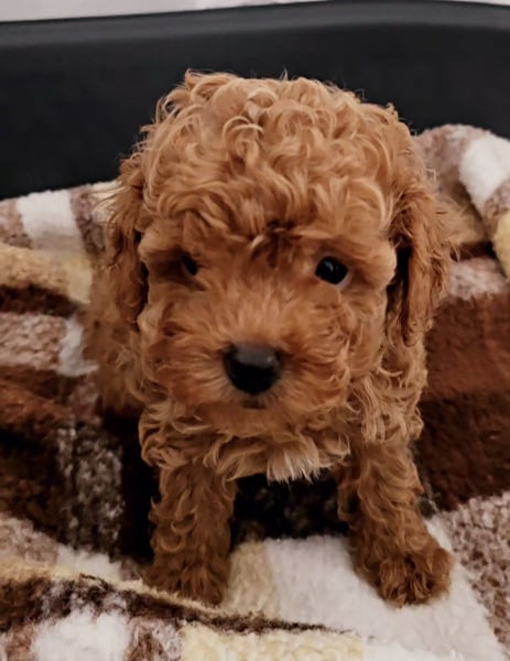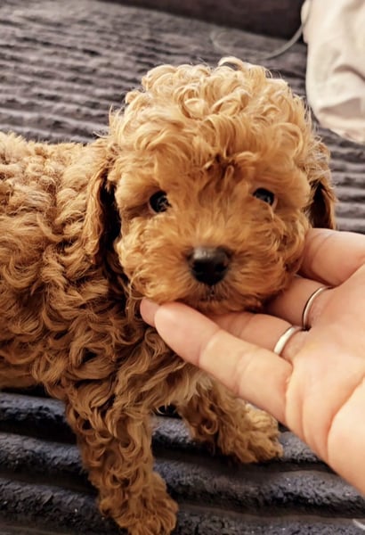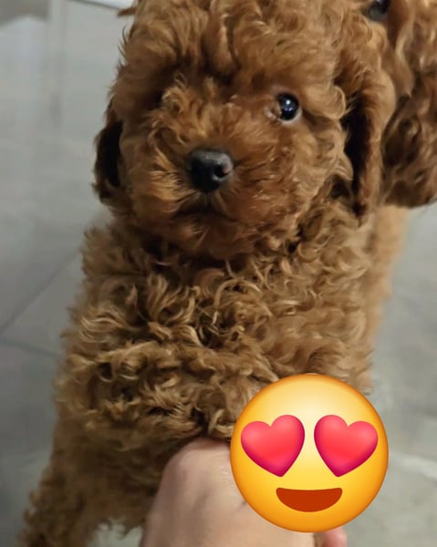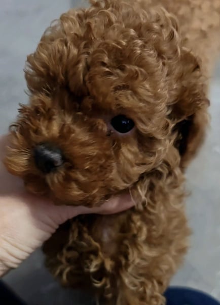 Die Kleinen Schmuckstücken sind extrem schön und sehr klein und kompakt als Körperstruktur , mit wunderschone Perfekten Püppchen Gesicht , Augen und Nase mit Schwarze Pigment , ohne Tränen Flecken, sehr dickes lockiges Fell und werden ein Endgewicht von maximal. 3kg erreichen, also definitiv kleinbleibene Toypudel mit sehr schöne Rotes Locken .