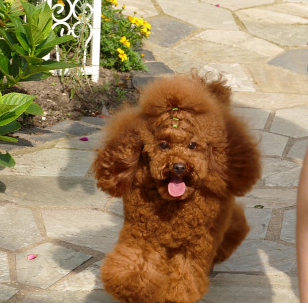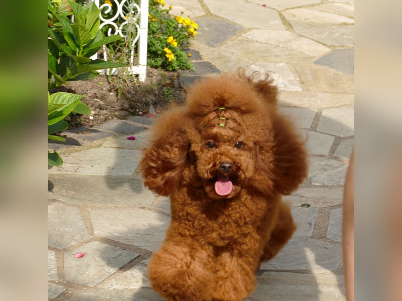 Unser Toypudel steht als Deckrüde zur Verfügung. Er ist am 10.07.2023 geboren, Farbe Red-Apricot, Schultergröße 26,5 cm , Gewicht 2.6 kg.