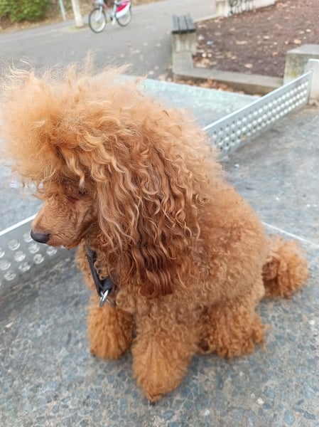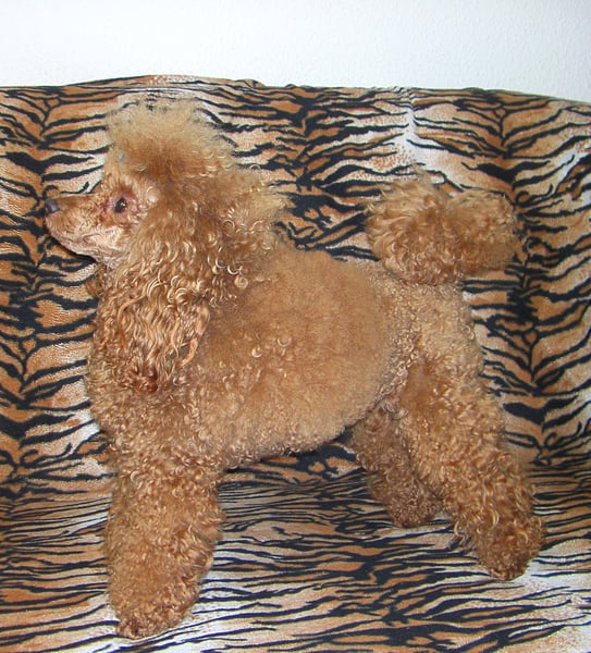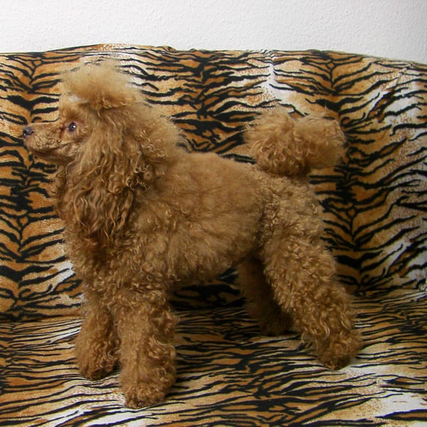 Unser Hund ist ein reinrassiger Toy Pudel Eineinhalb Jahre , 27 cm hoch, wiegt 3,7 kg.