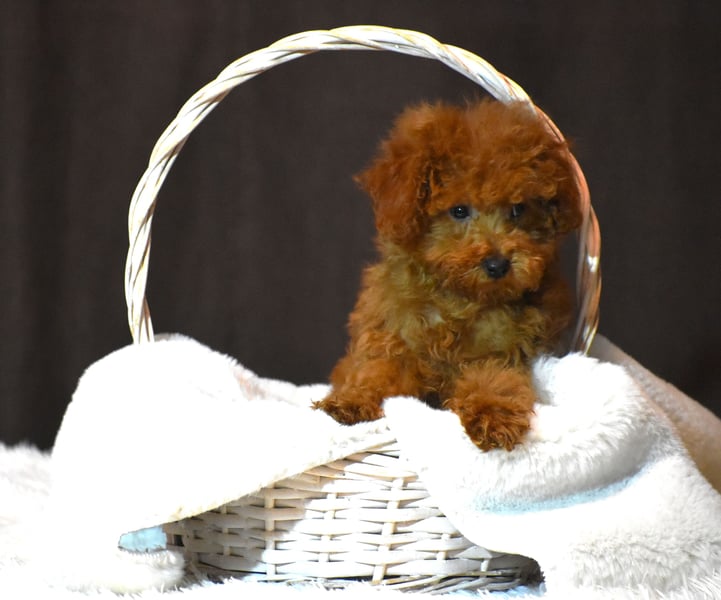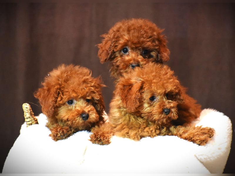 Drei wunderschöne, tief rotbraune, Toypudel-Welpen mit Stammbaum suchen ein liebevolles und verantwortungsbewusstes Zuhause.