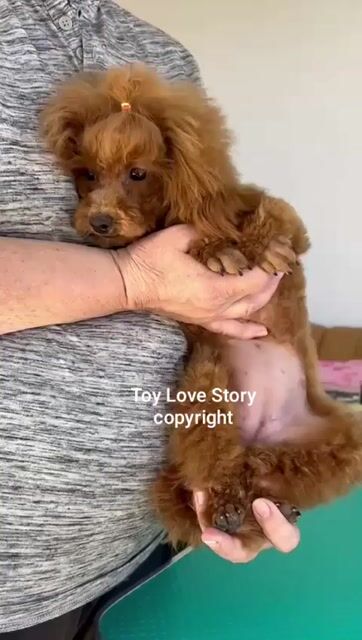 Ihr Name ist Jassel. Sie ist ein Toy-Pudel. Sie ist ein aktives, verspieltes und intelligentes Mädchen. Knietest 01, Augentest A (klar).