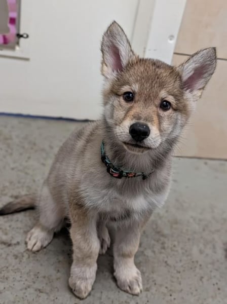 Im Tierheim Tornow warten besondere Hundekinder auf ihre Menschen. Es handelt sich um Tschechoslowakischer Wolfshund–Alaskan Malamute Mischlinge, geboren am 10.12.2025 im Tierheim Tornow (Bilder in der Reihenfolge der Namen).