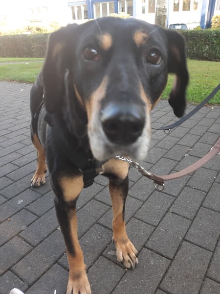 Wir suchen für Belinda ein ebenerdiges Zuhause mit Garten. Belinda liebt lange Spaziergänge wo sie Gerüche wie ein Schwamm aufsaugen kann. Belinda mag Kinder und Hundeerfahrene Katzen. Belinda sollte als Einzelhund gehalten werden, da Madame noch üben muss das ihr andere Hunde nichts tun. Leider kann sie uns nicht erzählen was ihr schlimmes passiert ist. Bei Schüsse oder Böller zeigt Belinda das sie Angst hat, läuft aber nicht weg sondern kommt zur Pflegemama und läuft bei Fuß.