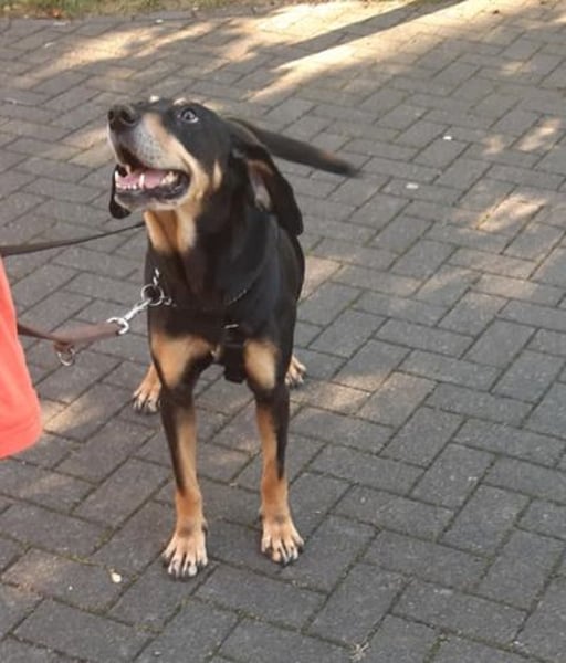 Da Belinda ein kleines Muskelpaket ist, sollte man schon standhaft sein, wenn sie mal in eine andere Richtung möchte. Belinda ist eine ungarische Bracke (Jagdhund), wobei der Jagdtrieb nur bei Rehduft raus kommt. Sie lässt sich aber gut händeln. Bedingt durch ihre Rasse sollte sie nur an der Leine bzw. Schleppleine laufen.