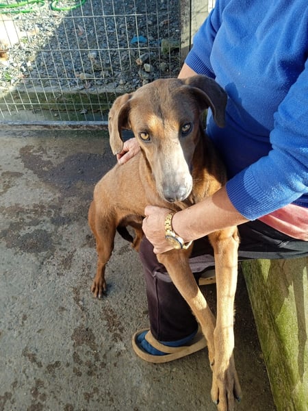 Chocolate ist ein Weimaraner-Ridgeback-Mix, und er hat das neugierige Wesen der beiden Hundetypen. Allerdings ist von der Souveränität, dem Selbstvertrauen und dem Mut dieser Rassen noch nicht viel zu sehen. Aber wenn Chocolate erst einmal gelernt hat, dass man den Menschen vertrauen darf, wird er sicher auch seinen „inneren Löwenhund“ entdecken. Um dahinzukommen, muss der junge Rüde (Ridgebacks gelten als Spätentwickler – und es kann gut sein, dass der elegante Jagdhund noch mitten in der Pubertät steckt) ein verlässliches und erfahrenes Zuhause finden, mit einer Familie, die sich der Herausforderung eines ängstlichen Hundes stellt, und ihm zeigt, wie man die Welt entdeckt und erobert.