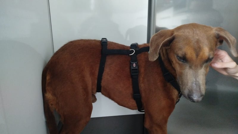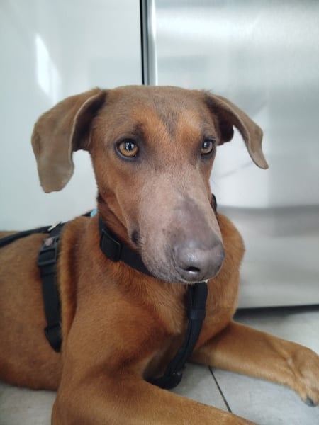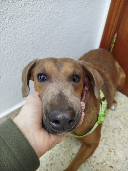 Der zweijährige (Stand 02/2025) Rüde tauchte eines Tages auf dem Gelände eines Freundes des kleinen Tierschutzvereins „Las Huellas de Dylan“ auf, aber da Chocolate sehr scheu ist, war es sehr abenteuerlich, den bildhübschen Mischling einzufangen.