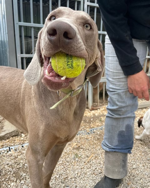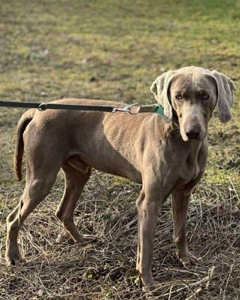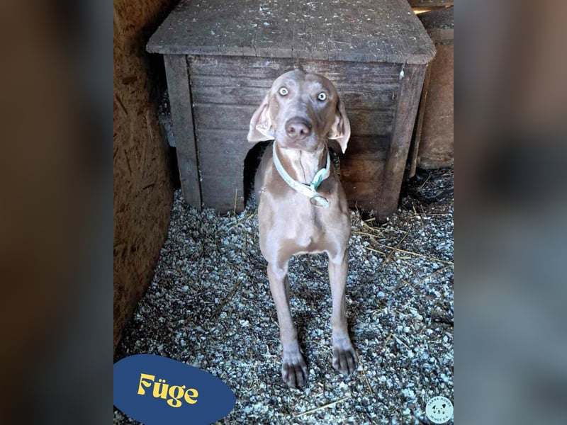 Füge ist ein stattlicher Weimaraner, der seine Familie wegen eines Umzugs in eine Wohnung verlassen musste. Er ist sehr aktiv, spielt für sein Leben gern und liebt lange Spaziergänge. Für ein Leckerli zeigt Füge großen Einsatz – und Mahlzeiten sind ihm besonders wichtig.
