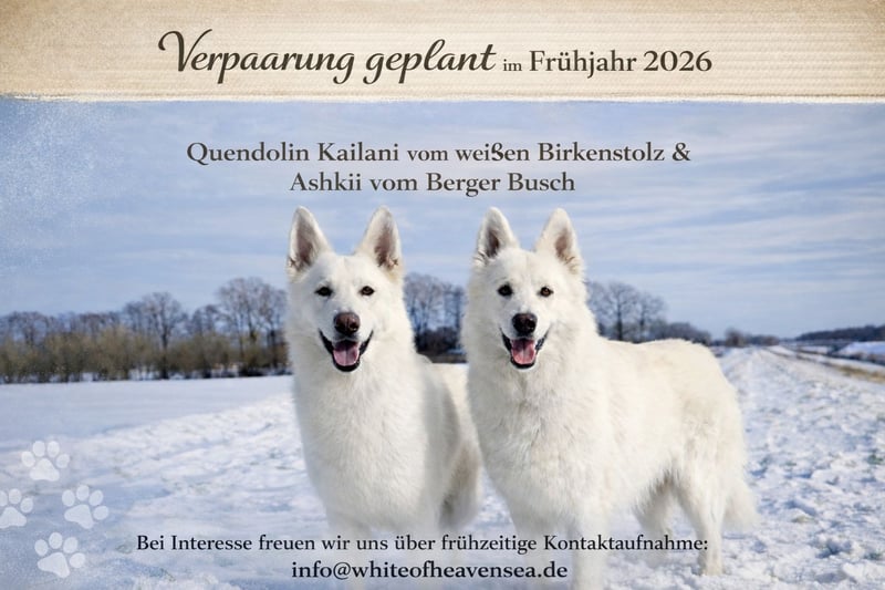 Herzlich Willkommen bei unserer Zuchtstätte. Ich heiße Sabrina u. meine Zucht Hündin ist die Quendolin Kailani vom weißen Birkenstolz ( 2 Jahre ). Zu mir gehört mein Mann Michael, unser Sohn und 3 weitere Hunde. Wir sind immer offen für Fragen!