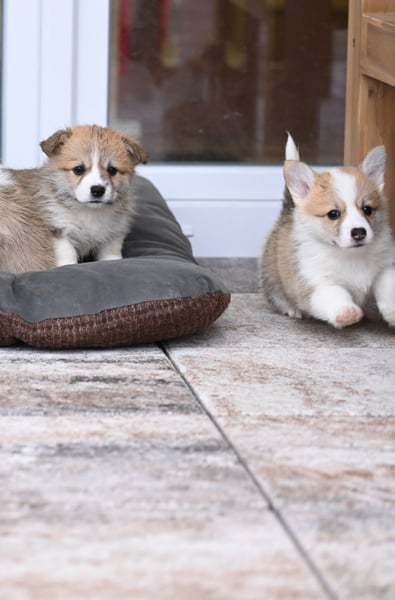 Sie wachsen bei uns mitten im Familienleben auf und sind bestens sozialisiert. Die Kleinen sind neugierig, verspielt, verschmust und zeigen bereits jetzt den typischen, fröhlichen Corgi-Charakter.