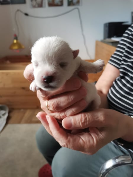 Hallo liebe zukünftige Hundeeltern! Der Westhighland White Terrier Zwinger " White Chilli " hat Nachwuchs bekommen. Wir betreiben eine kleine Hobby Zucht unter strenger Aufsicht des Klub für Terrier von 1894 e. V. Die Kleinen sind am 24.09.2025 geboren und sind, wie ihre Mama auch, gesund und munter Sie wachsen bei uns im Haus und Garten auf, werden allseitig sozialisiert, lernen viele Umwelteinflüsse und auch das Autofahren kennen. Beide Eltern sind auf Erbkrankheiten dieser Rasse, wie CMO und Patellaluxation, untersucht. Eine DNA - Untersuchung bestätigt die Reinrassigkeit. Die entsprechenden Angaben enthält die Ahnentafel. Bei Abgabe sind die Welpen - mehrfach entwurmt - gechipt - altersgemäß geimpft Sie besitzen einen EU - Heimtierausweis, sowie eine Ahnentafel des Klub für Terrier von 1894 e. V. Käufer und Verkäufer schließen einen rechtsverbindlichen Kaufvertrag.