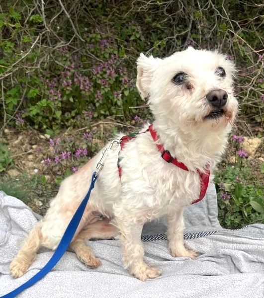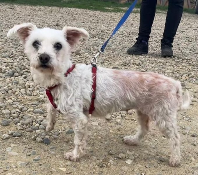 Die kleine Hündin war am Anfang sehr durcheinander und versuchte in ihrer Not zu schnappen. Sie wurde offensichtlich von ihren Vorbesitzern schlecht behandelt und traumatisiert. Im Tierheim wurde ihr Zeit gegeben, und sie wurde mit Geduld sozialisiert.