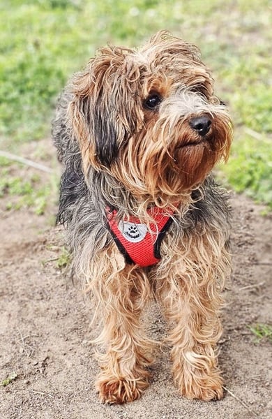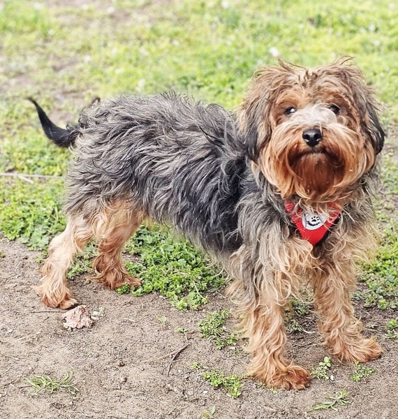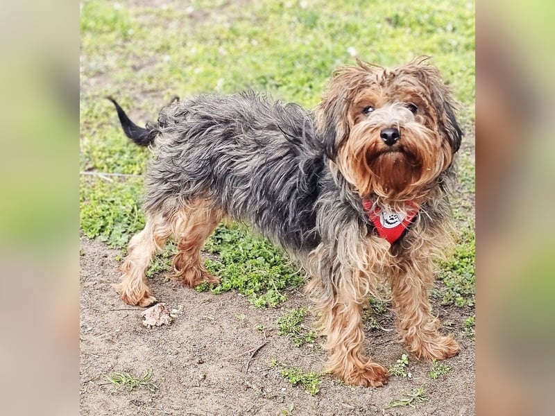 Manchu, Hündin, Yorkshire Terrier Mischling, geboren ca. 01. Januar 2024 (von einem ungarischen Tierarzt geschätzt), reist kastriert, Schulterhöhe: ca. 30 cm und ca. z.Z. 5,5-6,5 Kilo (Hals: 24-28 cm, Brust: 43-47 cm), Vermittlung zu Katzen: ja, wenn diese das Leben mit Hunden kennen. Auf Wunsch wird auch extra nochmals getestet, nur eine Garantie gibt es nicht.