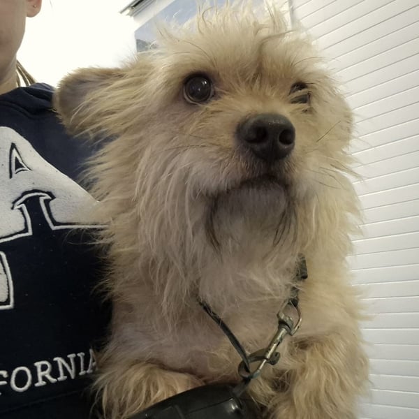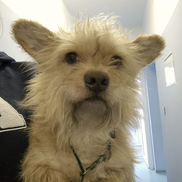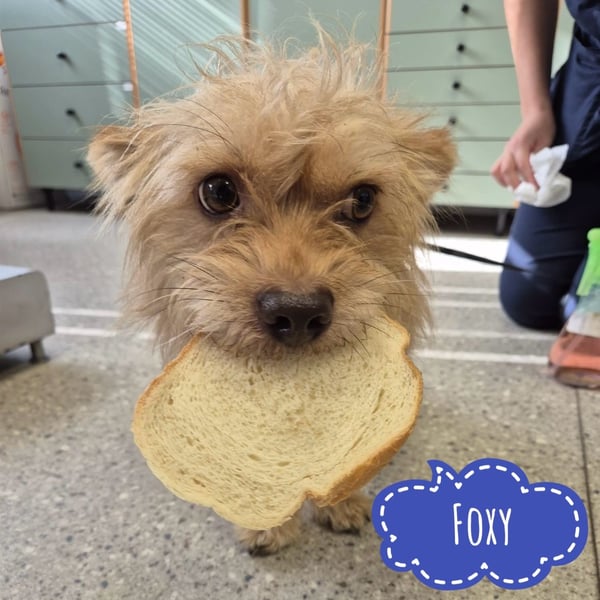 Foxy ist ein Rüde, laut Tierarztschätzung ca. 1,5 Jahre alt (geb. 29.03.2024), etwa 27 cm groß und wiegt 8 kg. Vermutet wird ein Yorkshire-Terrier oder Norfolk-Terrier-Mischling.
