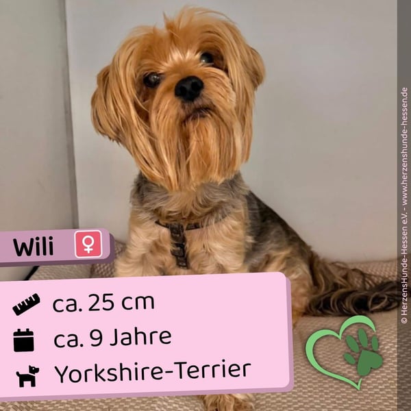 Wili ist ein etwa 9 Jahre alter Yorkshire-Terrier-Mischlingsrüde mit einem Gewicht von ca. 8 kg. Er stammt ursprünglich aus privater Haltung und wurde nach 9 Jahren abgegeben – ohne nachvollziehbaren Grund. Laut Vorbesitzer soll er ein Kind gebissen haben, im aktuellen Umfeld zeigt er sich jedoch durchweg freundlich und unauffällig.