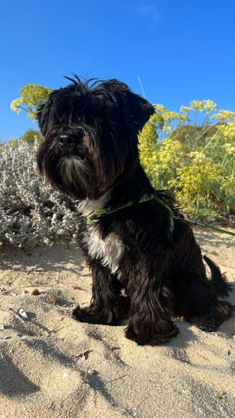 Charakter:Er ist ein aufgeschlossener, sozialer und verschmuster Rüde mit typischem Terrier-Temperament. Im Alltag zeigt er sich freundlich und unkompliziert.
