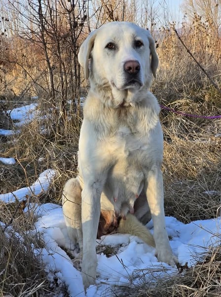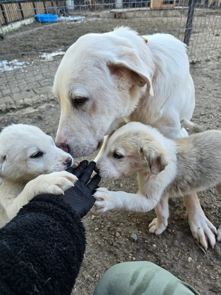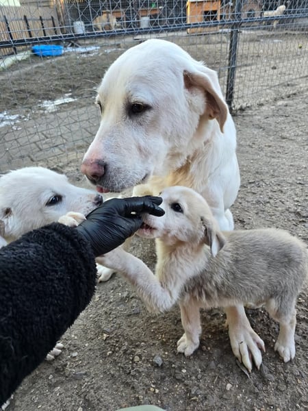 Aura zeigt sich sehr kooperativ. Trotz Welpen ist sie sehr freundlich zu Menschen und bekommt auch immer wieder eine Auszeit vom Mutterdasein. Mit dem vor Ort lebenden Kangalmix und zwei anderen Hündinnen kommt sie, unter Beobachtung, gut aus und spielt gerne mit den anderen Hunden. Zu anderen Hündinnen wird sie jedoch nicht vermittelt, da wir hier ein größeres Risiko einer Unverträglichkeit sehen.