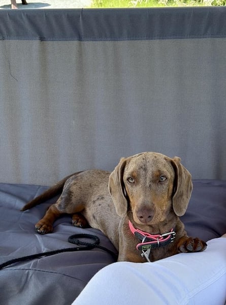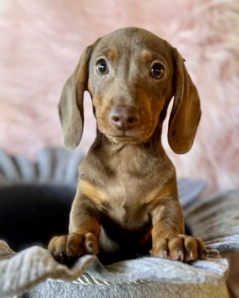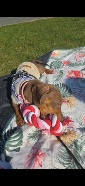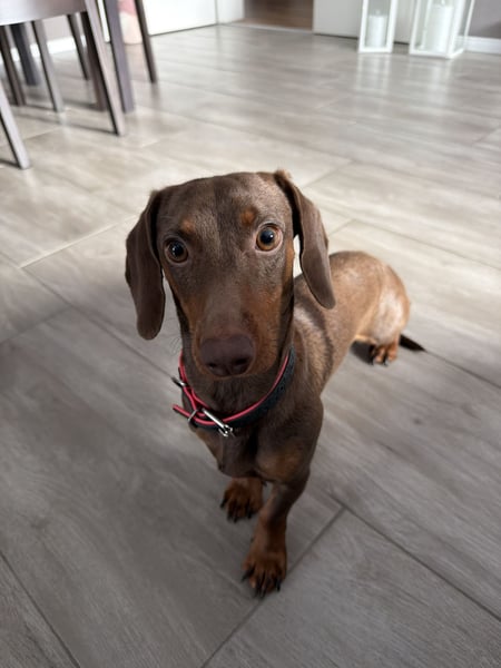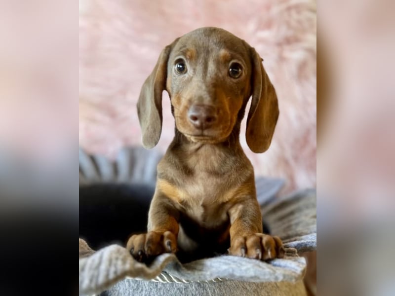 Ich bin Lotte,1 1/2 Jahre jung und eine Amerikanische Zwergdackel Hündin. Ich habe ein wunderschönes schockobraunes buntes kurzhaar Fell. Selbstverständlich bin ich stubenrein und schlafen die Nächte seelenruhig durch. Ich schaffe es auch mal allein zu bleiben. Ich wurde unglaublich liebevoll erzogen, kann an der Leine laufen und höre aufs Wort.