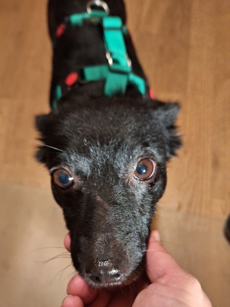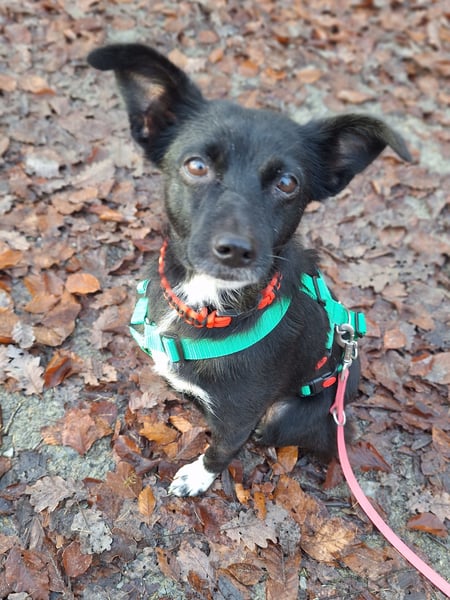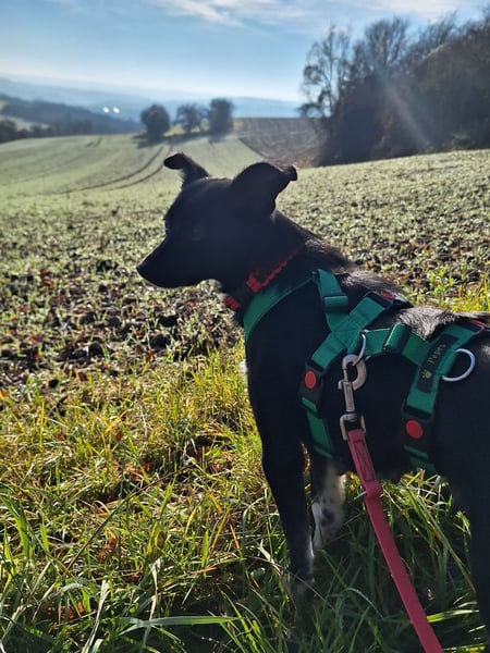 - Leinenführig: sie läuft sehr gut an der Leine! Sie sichert sich immer wieder bei ihrem Menschen ab, lässt sich gut an der Schleppleine herbei rufen. Wenn sie unsicher wird, bleibt sie stehen, lässt sich aber mit Aufmunterung zum weitergehen bewegen. Ein unkomplizierter Hund an der Leine.