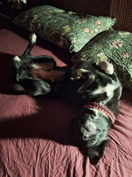 Alltagsgeräusche im Haus sind unproblematisch, auch Treppen und Autofahren meistert sie gut. Autos von außen und verkehrsreiche Straßen findet sie allerdings beängstigend. Zum Autofahren lässt sie sich aber einfach rein heben, sie kann alleine auch aufgrund der Höhe schlecht einsteigen. Kinder liebt sie sehr, kommt gerne zum kuscheln und ist sehr rücksichtsvoll. Im Zweifel zieht sich Madita immer zurück, sie möchte absolut keinen Ärger. Ihr Körbchen ist ihr sicherer Hafen.